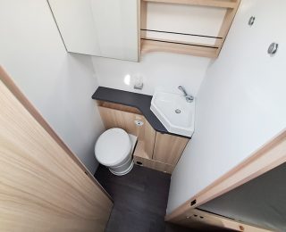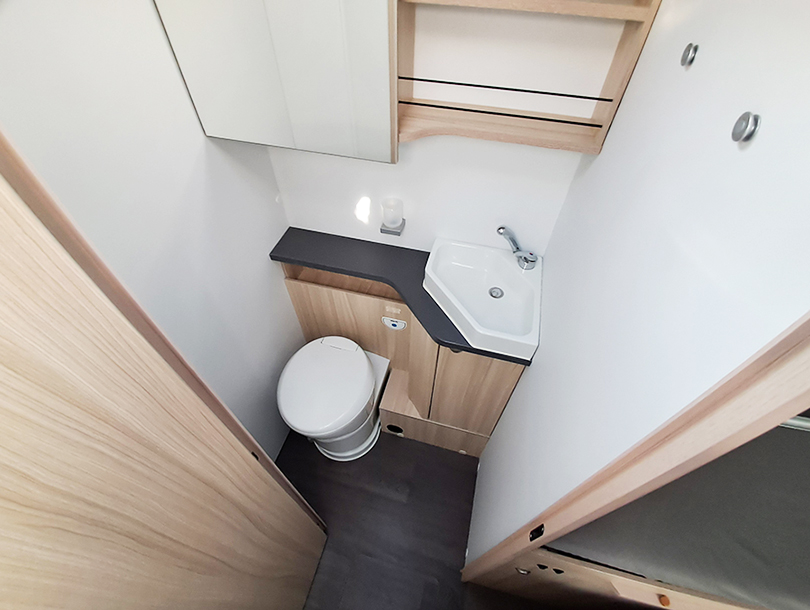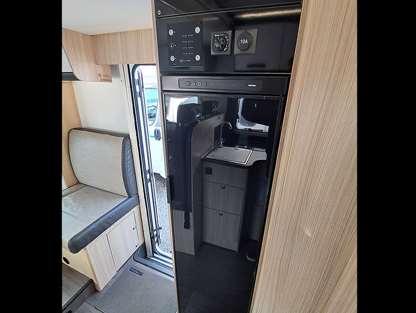 In de camper zijn een toilet en separatedouche aanwezig, drie kookpitten en een grote koelkast met vriesgedeelte. Ook zit er op de camper een luifel en een fietsenrek.